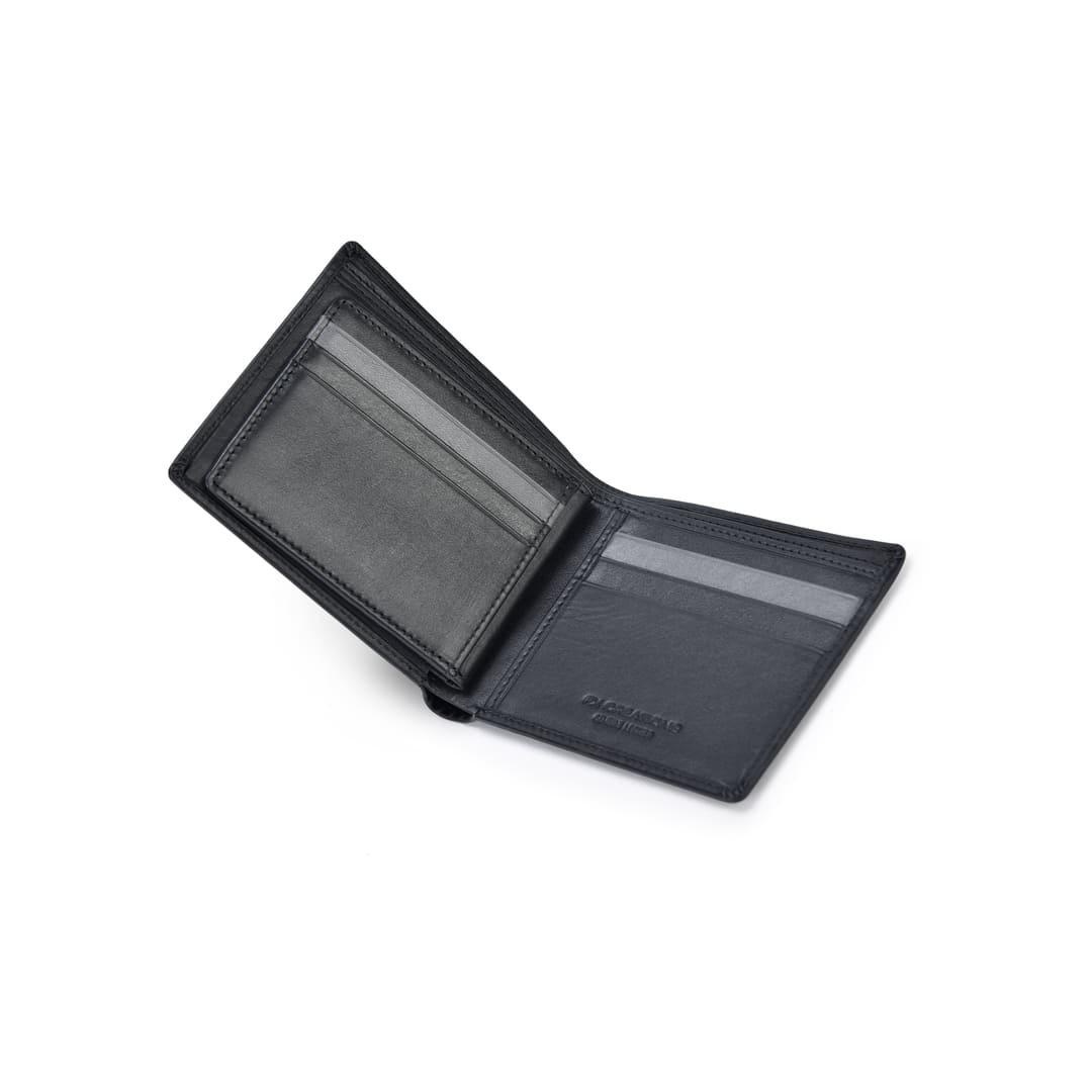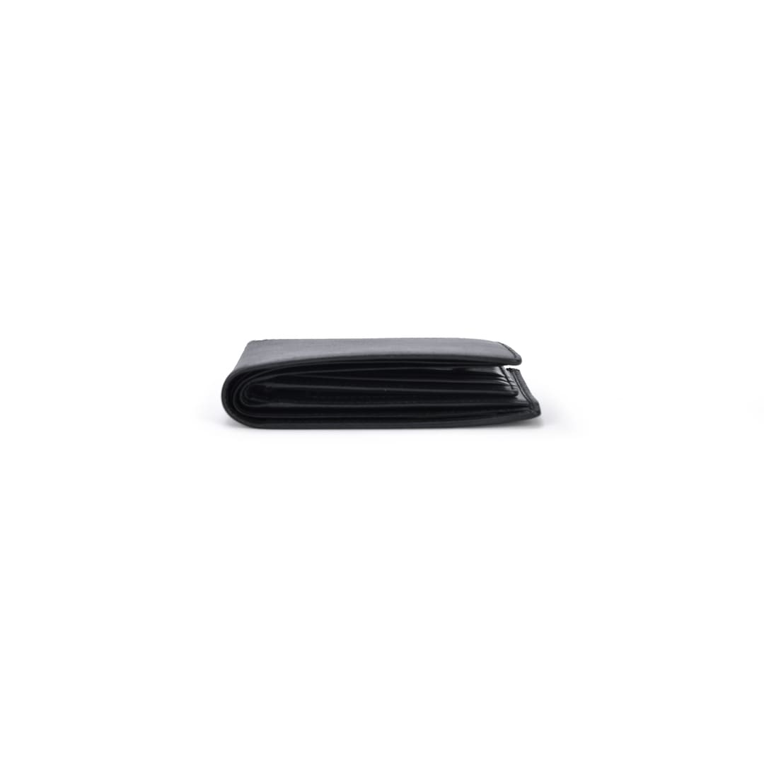 Impeccably crafted from premium black leather, this wallet combines elegance and durability in one sleek design.